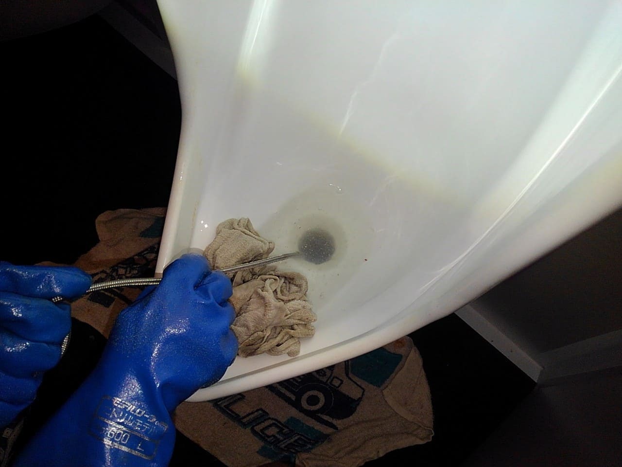 通常の高圧洗浄だけでは除去できないような汚れに対し、米国RIDGID®社製FlexShaft®等の回転式チェーンノッカーを用いた除去作業を行うことで、固着した尿石を完全に除去することが可能になりました。
